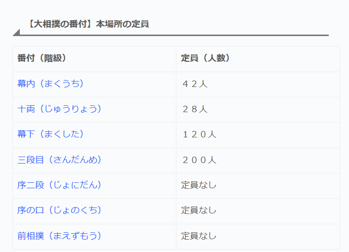 | ... | 16 1758492344444.png 相撲の階級別人数は画像の通りでよくテレビで見る大関や平幕は一番上の幕内42人の精鋭の力士たち |